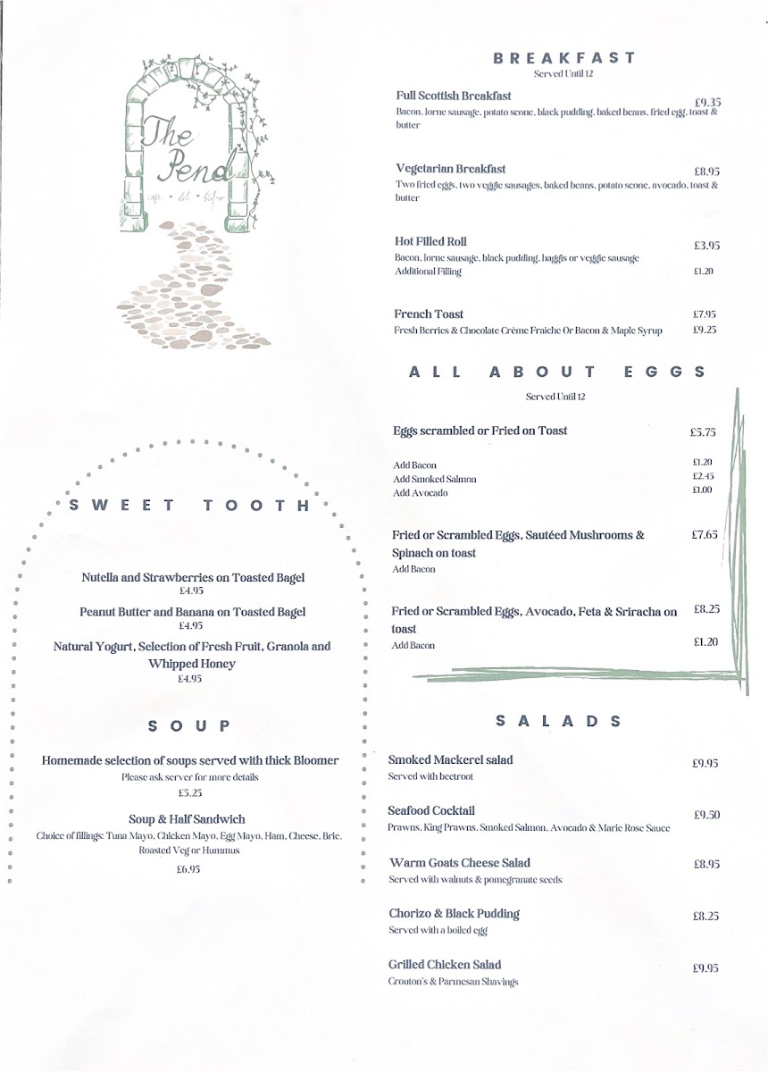 When it comes to the menu, The Pend Cafe & Bistro truly shines. Whether you're indulging in their renowned Full Scottish Breakfast for £9.35—complete with hearty sausages, baked beans, and fluffy scrambled eggs—or the innovative Fried Scrambled Eggs, Avocado, Feta & Sriracha on Toast for £8.25, your taste buds are in for a treat. Each dish is prepared with an attention to detail that transforms simple ingredients into mouth-watering experiences.